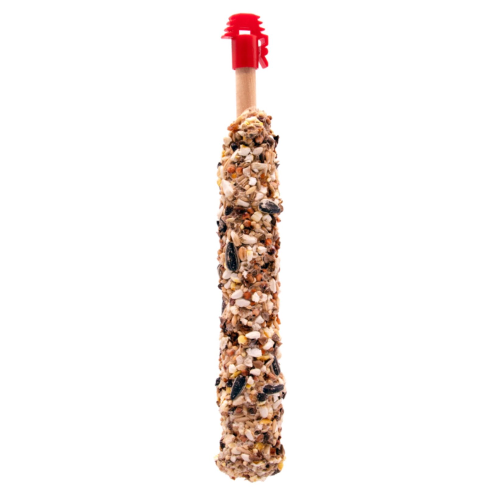Barritas de semillas muy variadas para Ninfas2 barritas de semillas horneadas extra grandes con cobertura de nueces y pasas, para cotorras y similares y lorosSabroso tentempié con avellanas, nueces y pasas sultanasSin azúcares añadidos y sin conservantes, colorantes ni aromas sintéticosEnriquecido con cáscara de ostra140g – 2x70g (EAN 5410340223574)Composiciónsubproductos de origen vegetal, semillas, cereales, frutas (uvas pasas 6%), frutos secos 4% (avellanas 2%, nueces 2%), minerales (conchas de ostras 4%), aceites y grasasInstrucciones de usoSuministrar libremente como complemento de la alimentación principal.