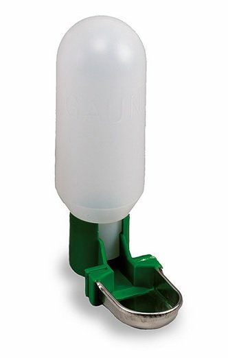 Bebedero semiautomático para palomas y perdices de 35 cl. Consta de una taza en acero inoxidable y una botella en material plástico. Adaptable a distintos grosores de varilla.Número de unidades por caja: 15