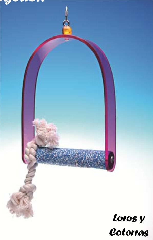 Columpio acrílico con percha limauñas. Válido para loros medianos y grandes como yacos, amazonas, eclectus, guacamayos,cacatuas, etc…Dimensiones aproximadas:Ancho: 22 cmAlto: 36 cmFoto no contractual. Los colores pueden variar.