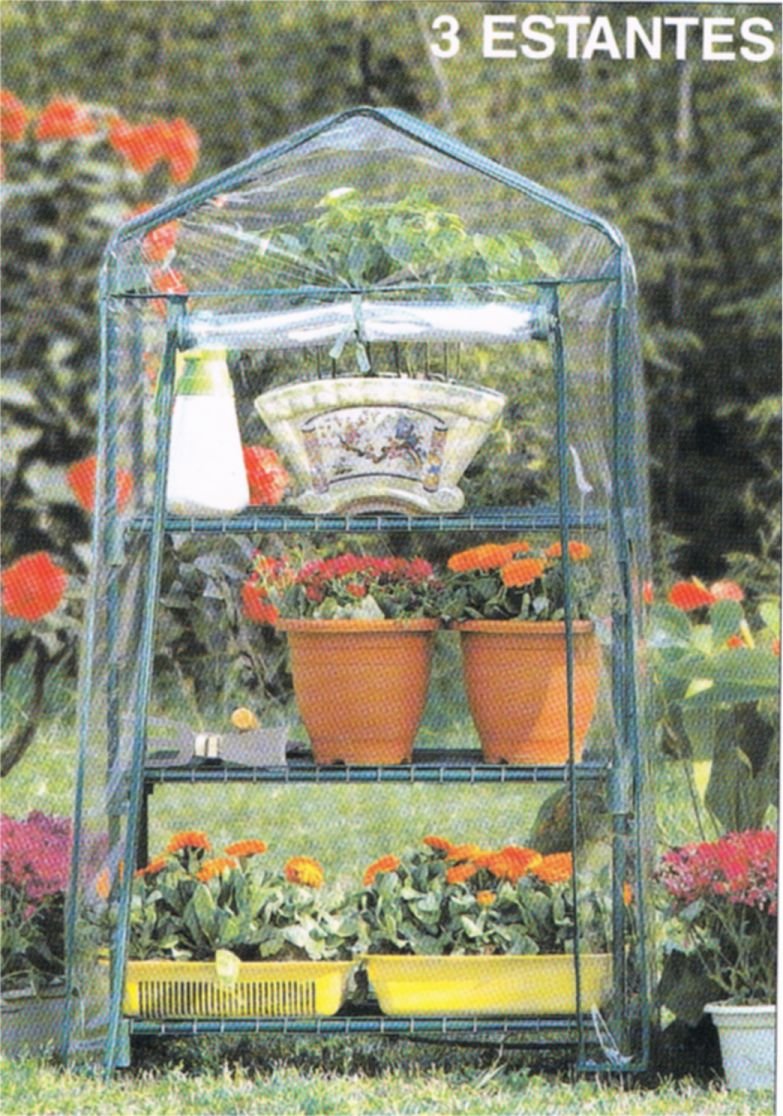 Invernadero doméstico interesante para proteger nuestro semillero y repicados de las inclemencias meteorológicas. Nos va a permitir adelantar los cultivos realizando la siembra antes.Invernadero con estructura de acero plastificado y funda de PVC.Opciones: 2, 3 y 4 bandejas. ·Material: tubo de acero y cubierta de PVC transparente. ·Sistema de montaje: sin necesidad de herramientas (incluye manual de instrucciones). ·Puertas con cremallera en la parte frontal. ·Perfecto para la protección y el cultivo de plantas. ·Ideal para patios, balcones y terrazas.Medidas: 68 cm de ancho, 49 cm de profundidad y la altura varía según el modelo:·2 bandejas: 90 cm. ·3 bandejas: 125 cm. ·4 bandejas: 156 cm.