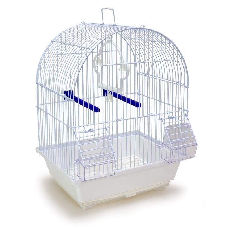 Jaula para aves pequeñas. Con techo redondeado. Incluye: bebedero , comedero, 2 barras de plástico y columpio con campana. Bandeja extraible. Medidas 30 x 23 x 39 cm