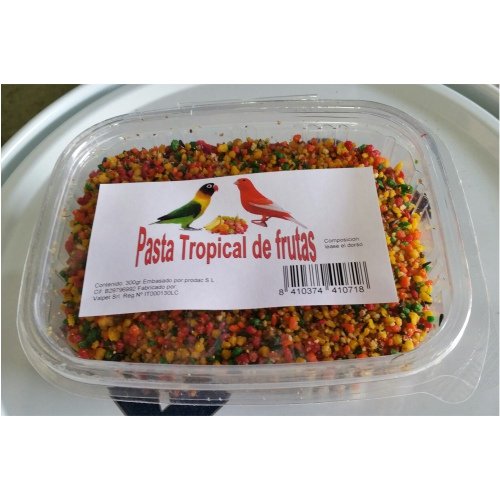 Alimento completo y equilibrado especialmente formulado para aves de pequeño y medio tamaño por su alto contenido en frutas, verduras y cereales. Es el complemento perfercto en la dieta de las aves, especialmente en época de cría estimulando los índices reproductivos, aumenta el peso de los huevos y disminuye la contaminación bacteriana de la cáscara. Adicifica el tracto intestinal y reduce la población de gérmenes patógenos.Ingredientes: Derivados de cereales, soja micronizada,azucares, levaduras vivas, fermentos lácticos liofilizados, huevo en polvo, semilla de níger,derivados de la leche (suero de leche, caseína, lacto proteínas), frutas variadas (coco, plátano, manzana, naranja) aromas naturales, conservante BHT,BHA y etoxiquin. Contiene aditivos biológicos a base de Saccharomyces Cerevisiae, Bacillus Cereus y Enterococus faecium los cuales estimulan los índices reproductivos, aumenta el peso de los huevos, favorece la consistencia de las heces y disminuye la contaminación bacteriana de la cáscara.