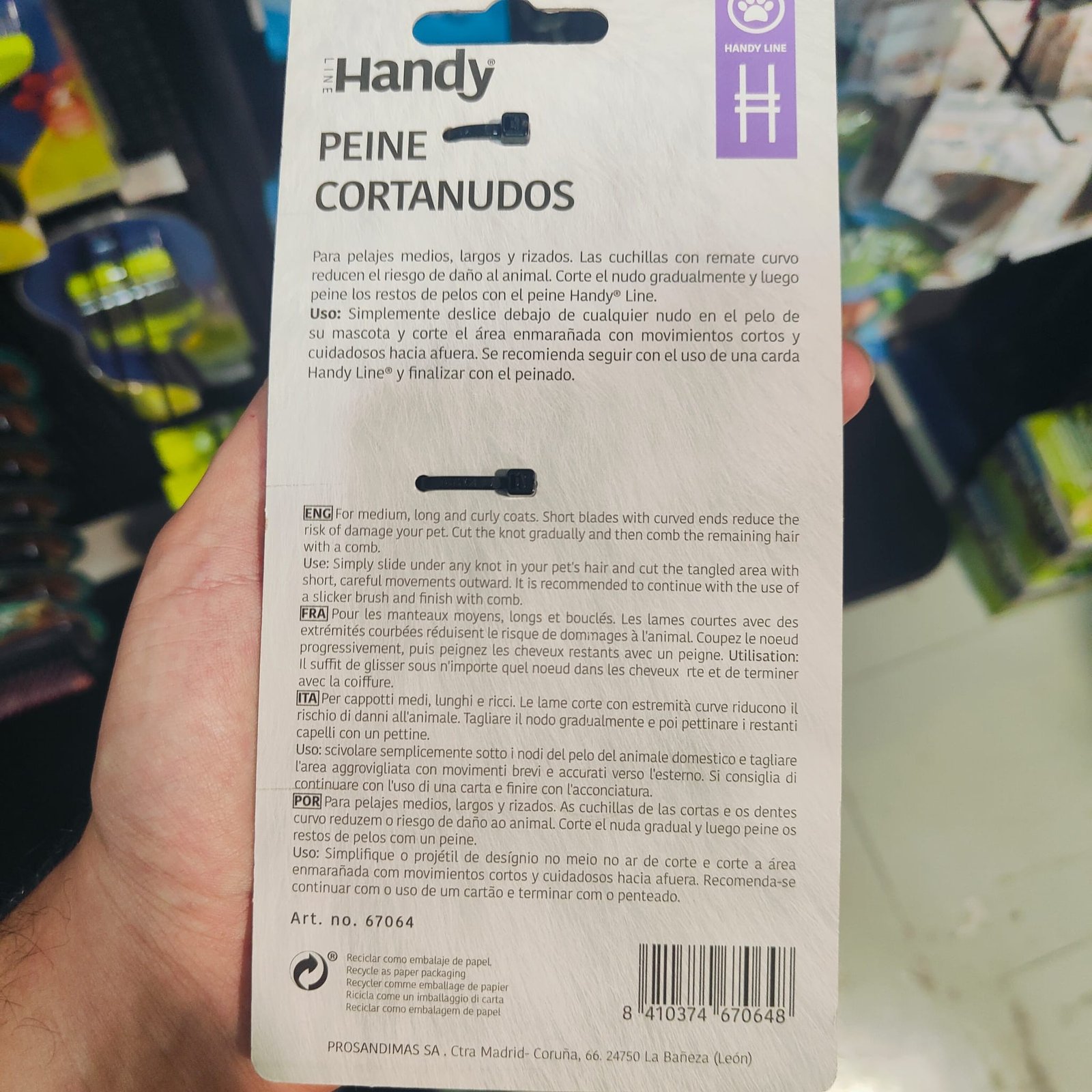 El peine Cortanudos especialmente indicado para animales de pelo largo es el co mplemento de la carda para el pelo enredado. Su diseño con 9 cuchillas de perfi l redondeado evita dañar la piel de tu mascota y consigue un perfecto acabado. El momento del aseo es muy importante, su buena realización contribuye a desarr ollar la interacción con tu mascota. Cortanudos 9 cuchillas L.Su diseño con 9 cuchillas de perfil redondeado evita dañar la piel de tu mascot a y consigue un perfecto acabado. Solidez: testado previamente y desarrollados con materiales de gran calidad, fruto del esfuerzo en innovación. Eficacia: dis eñado en colaboración con expertos en el aseo y cuidado de animales de compañía , nuestra gama garantiza la especialización del producto según la función (cepi llado, peinado, corte, etc.) Ergonomía: el mango antideslizante, así como la fo rma de cada utensilio aseguran, a la hora de su utilización el máximo confort ( forma del mango, ángulo de trabajo) mientras protege la piel y pelaje del anima l(dientes del peine, puntas redondeadas en los cepillos, etc.)Cepillar cuidadosamente el pelaje del animal en la direccion del crecimiento de l pelo.
