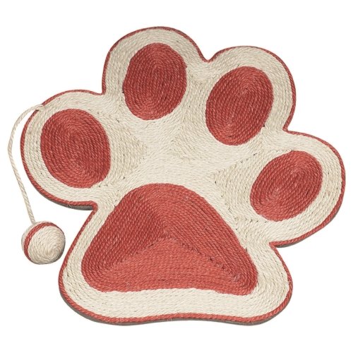 Rascador en forma huella con pelotaMedidas: 40 x 36 cm.Colores:-Rojo-Negro