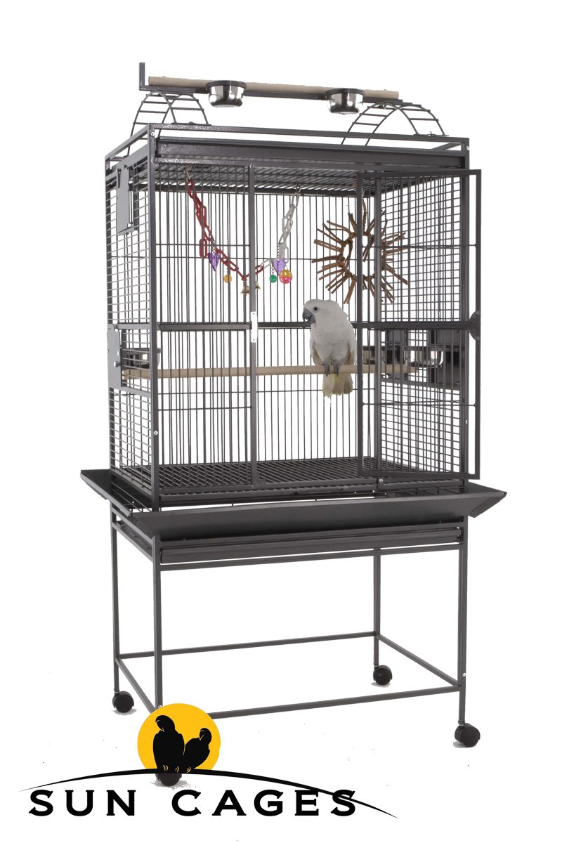 La jaula Finca Gym Top III, es perfecta para loros de tamaño mediano y grandes.Medidas:81.28 x 58.42 x 171 cm ( sin contar con las bandejas laterales – también se puede montar sin ellas )111.28 x 88.42 x 171 cm ( con las bandejas laterales ) Altura Interior: 76 cmEspaciado: 16.7 mmGrosor de barrotes : 3.5 mmGran puerta de acceso con cierre de seguridad exclusivo de Sun Cages. Parque de juegos superior con bandeja incluida.Bandejas laterales recoge semillas.Incluye perchas y 5 comederos de acero inoxisable (3 grandes en la jaula y dos pequeños en el parque)Puerta accesoria para nido o bañera.3 Puertas giratorias para los comederos con cierres de seguridad exclusivos de Sun Cages.