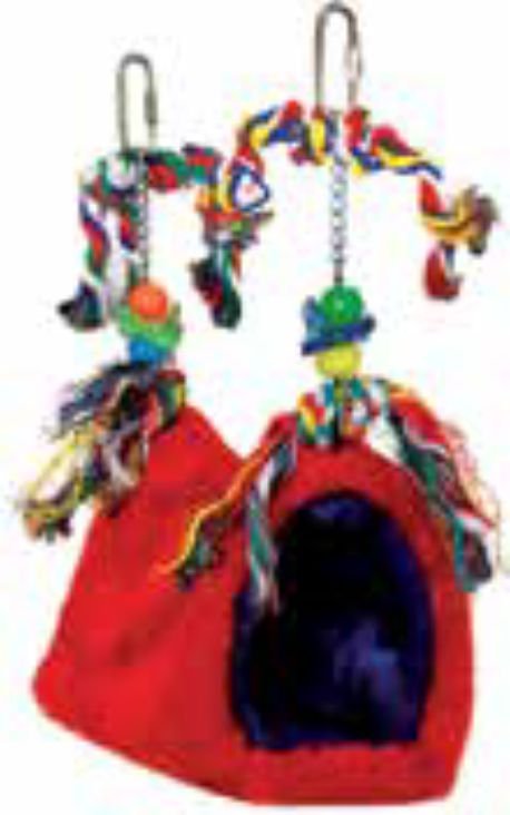 Divertido refugio confortable para loros pequeños y medianos. Tres tipos de tamaños. El Refugio les proporciona un divertido escondite con múltiples sorpresas y juguetes.Una pieza acrílica está insertada en la base del refugio para dar estabilidad y seguridad a su mascota. esta protege el refugio de la rotura. No está hecha de cartón como otras en el mercado.La cadena debe usarse para asegurar el refugio a la jaula y no es de plástico ni elástica para evitar que su mascota pueda comérsela.Medida: 27 x 18 cm
