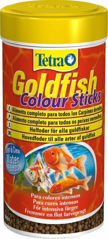 Tetra GoldFish Color Sticks, es un alimento completo y equilibrado en forma de sticks flotantes para la alimentación de carpines dorados y todos los peces de agua fría.Con este alimento asegurarás una vida larga y sana para tus peces, además de realzar sus espléndidos colores.Otra cualidad del mejorado tetra Goldfish es que utilizado en la medida correcta mejora el aprovechamiento del alimento, consiguiendo disminuir la cantidad de excrementos de los peces y manteniendo el acuario más limpio.COMPOSICION:Pescado y Subproductos de pescado, Cereales, Levaduras, Legymbres, Extractos de proteína vegetales, Moluscos y crustáceos, Aceites y grasas, Algas (Spirulina Maxima 6%), Sustancias Minerales.COMPONENTES ANALITICOS:Proteina bruta, 30%, Aceites y grasas brutos 6%, Fibras brutas 2%, Contenido de humedad 8%.