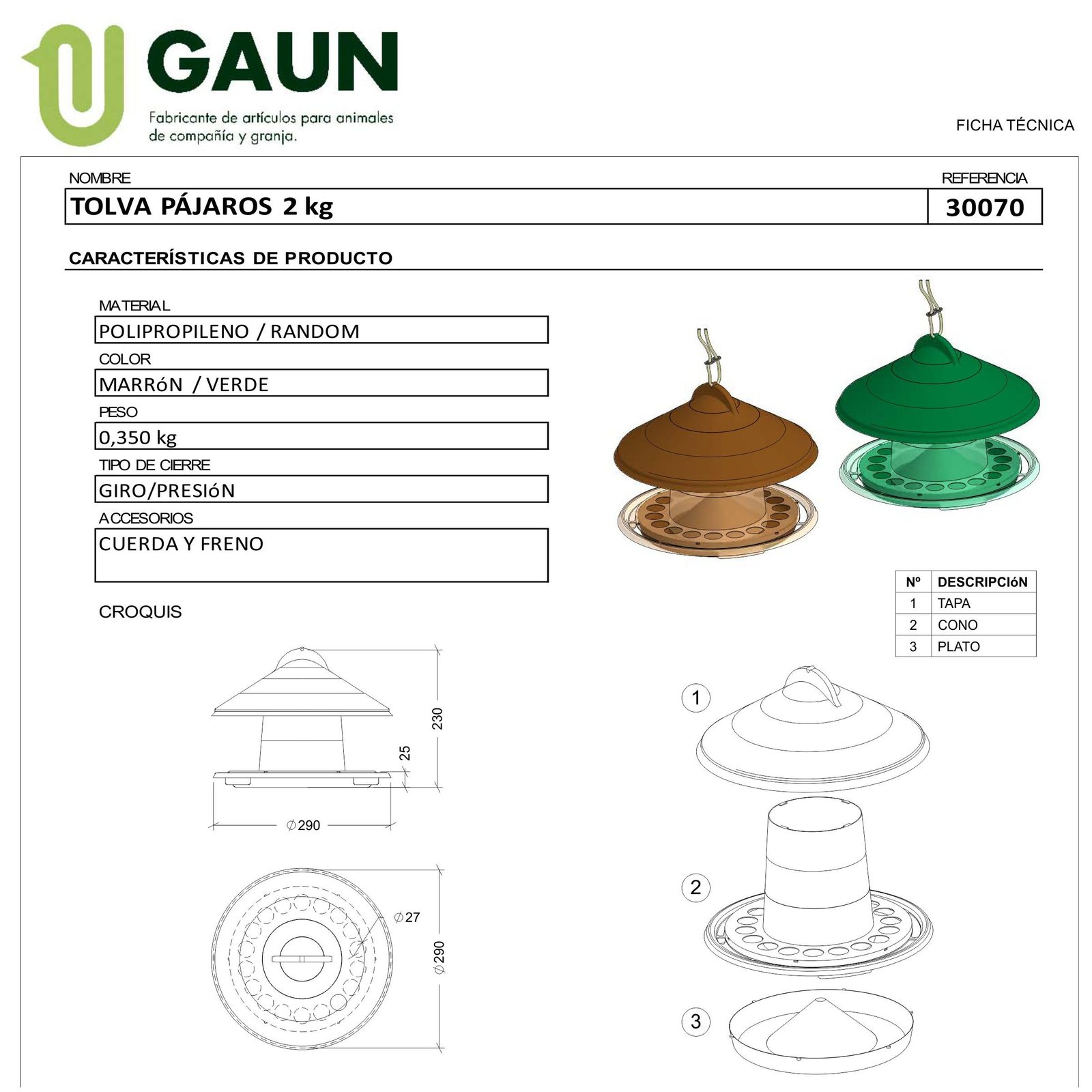 Tolva Plastico Pajaros Capacidad 2 Kg.gaun. Producto especializado para el cuidado y bienestar de tus pájaros, seleccionado por su calidad y durabilidad.